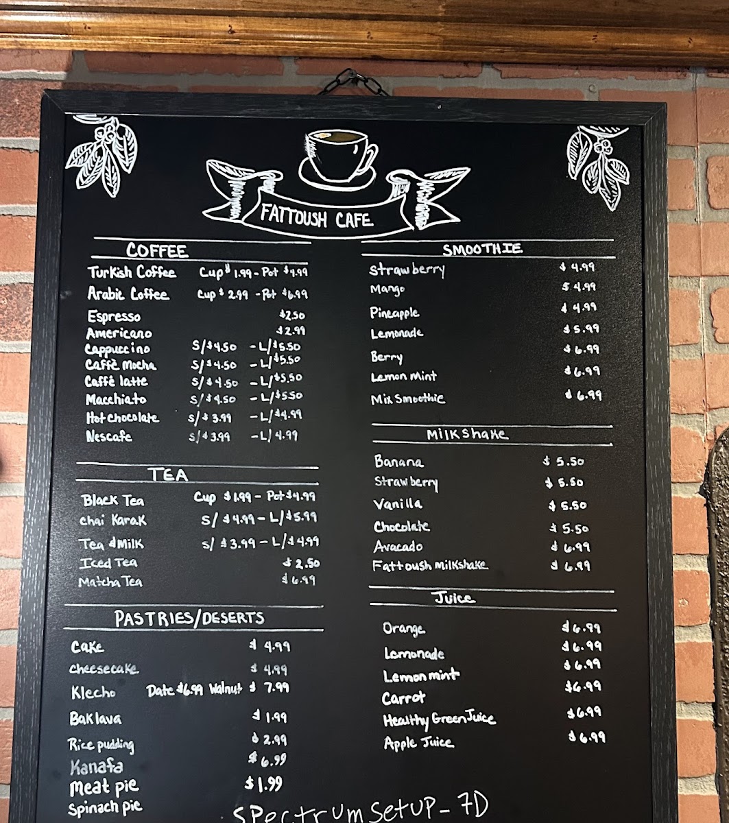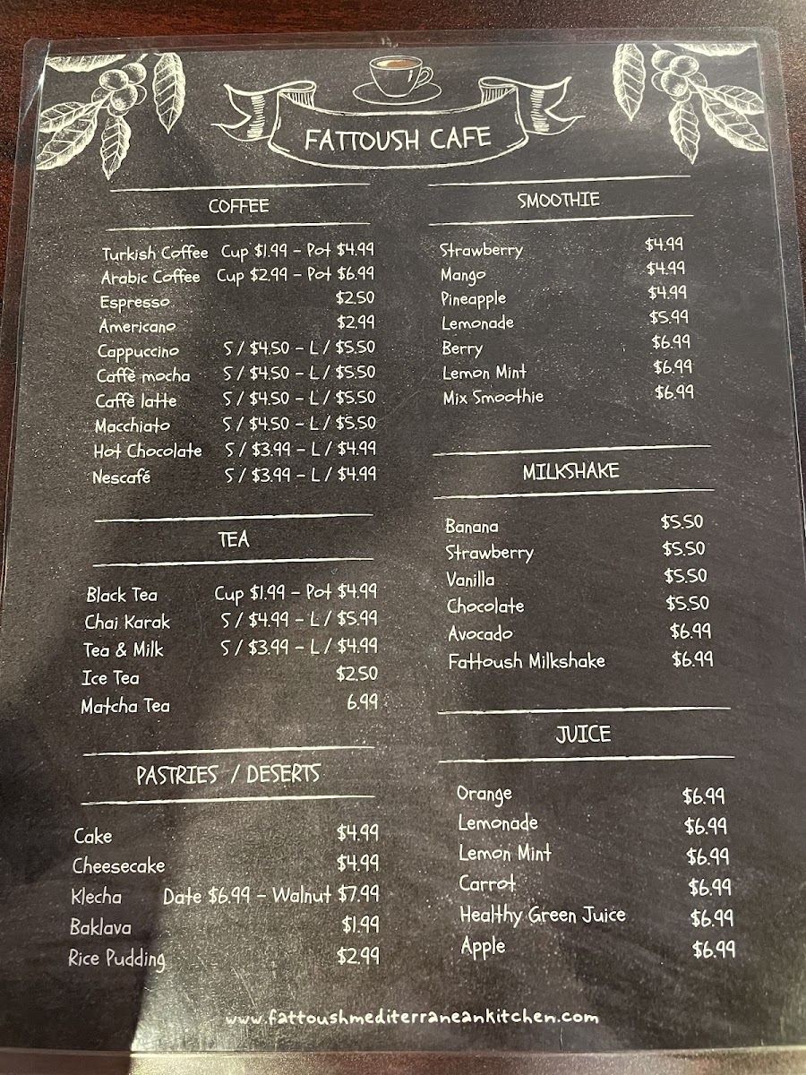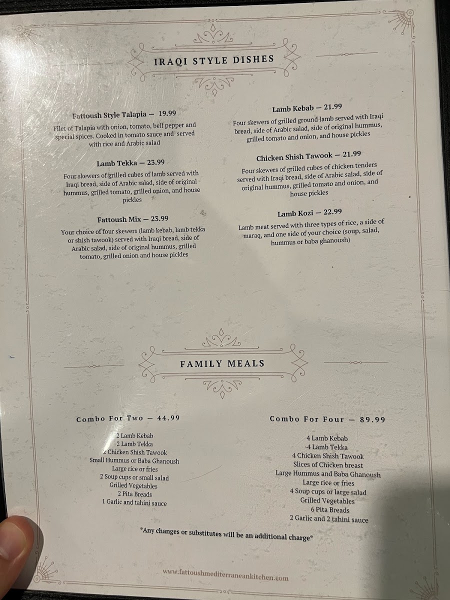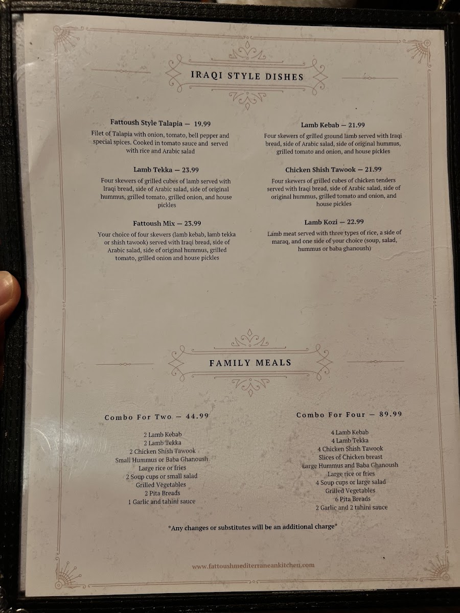 Don't miss the authentic Iraqi-style dishes, which elevate traditional kababs with sides like fresh Arabic salad, original hummus, grilled tomatoes, and house pickles. Every dish reflects an unwavering commitment to flavor, quality, and tradition, making Fattoush a treasured dining destination for locals and visitors alike.